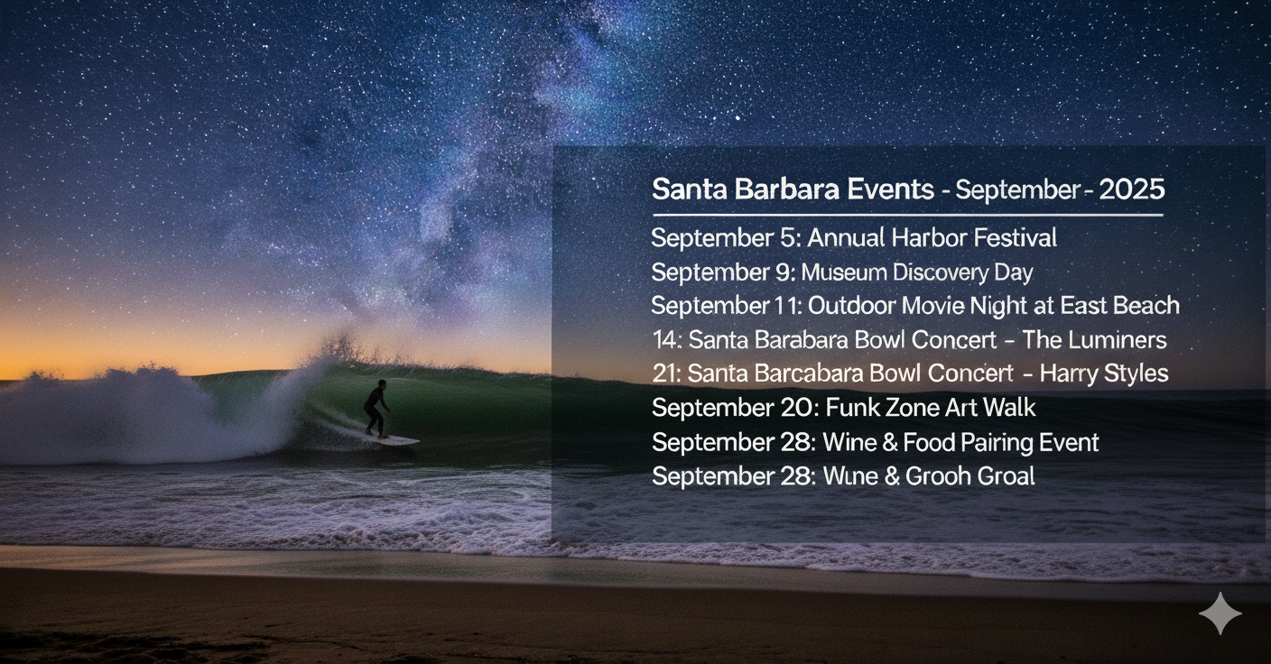 - Santa Barbara Surf Film Festival at Lobero Theatre – Sept 26–27 Celebrating surf legends and storytelling through film.