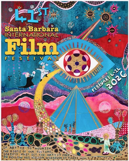 The poster for the 41st Santa Barbara International Film Festival (SBIFF), created by local artist Baret Boisson, centers on the powerful theme of artistic freedom and the essential need to support creators.